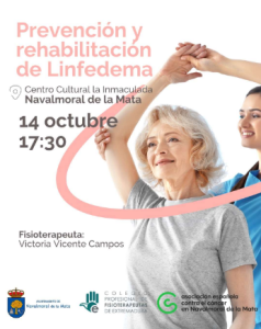 «PREVENCIÓN Y REHABILITACIÓN DE LINFEDEMA». Impartido por Victoria Vicente, Fisioterapeuta. Lugar: Sala Técnica Centro Sociocultural la Inmaculada”. Organizado por AECC.